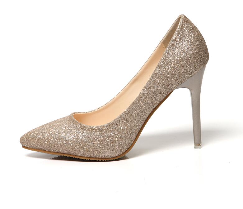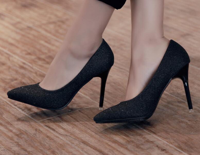 Shallow-mouth pointed stiletto gold and silver black high heel single heel shoes
