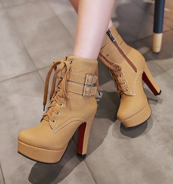 High heel thick with belt buckle in the boots women's shoes