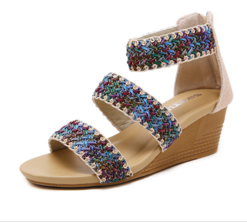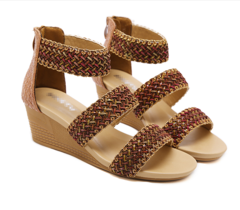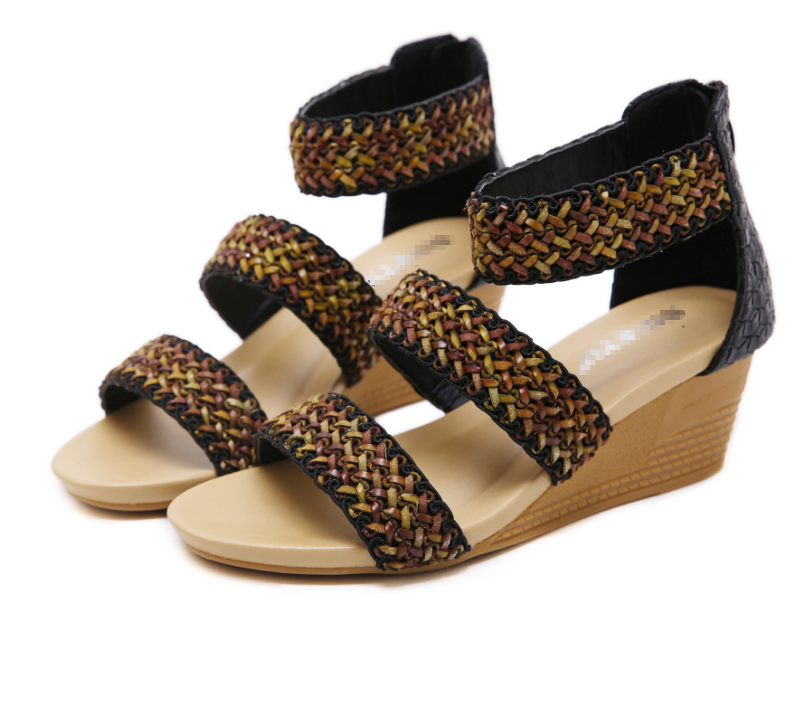 2023 new 2019 women's sandals woven bohemian wedge heel shoes