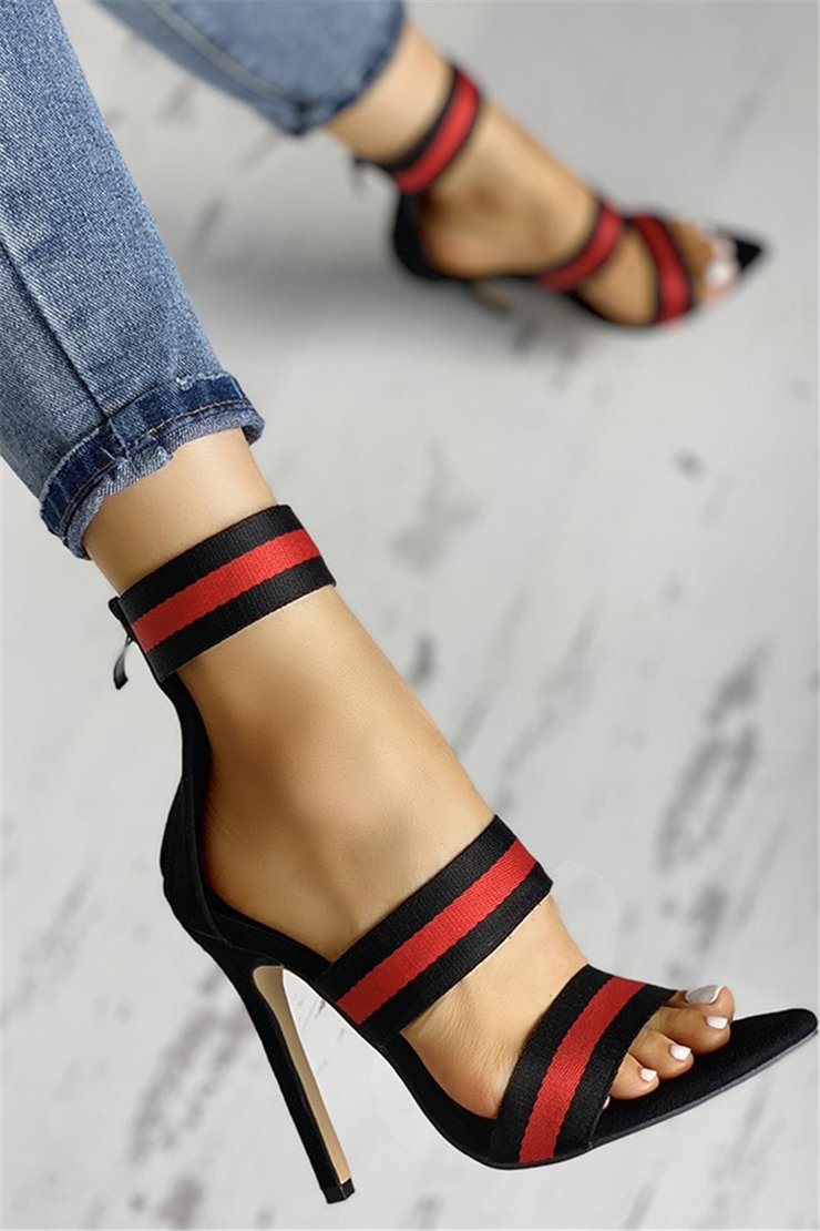 Women Fashion Contrast Color Strap Thin Heeled Sandals Hot SD2280