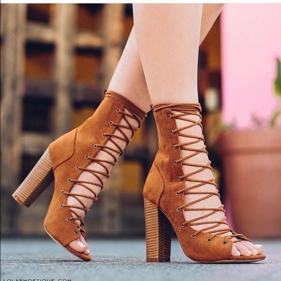 Straps Hollow Out Back Zipper High Chunky Heel Ankle Boot Sandals SDE2360