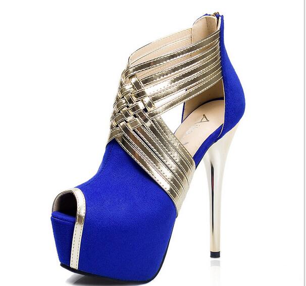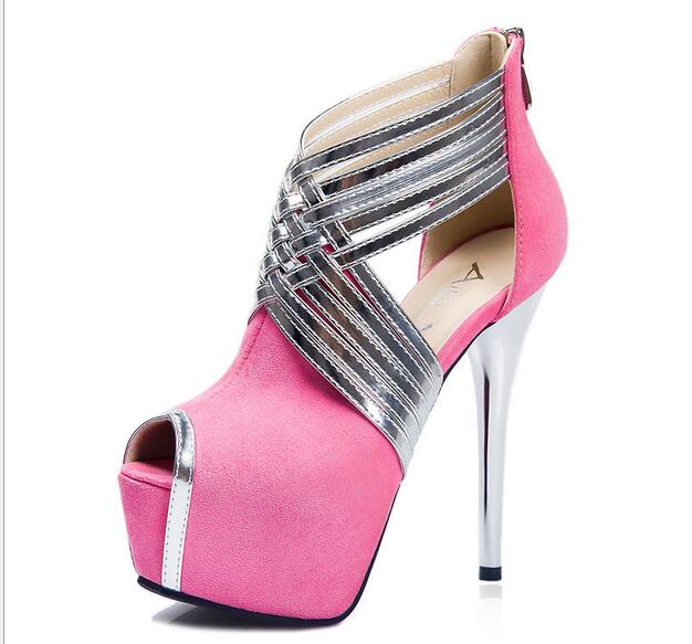 Peep Toe High Heel Pumps Featuring Metallic Weave Style Straps with Zipper Closure