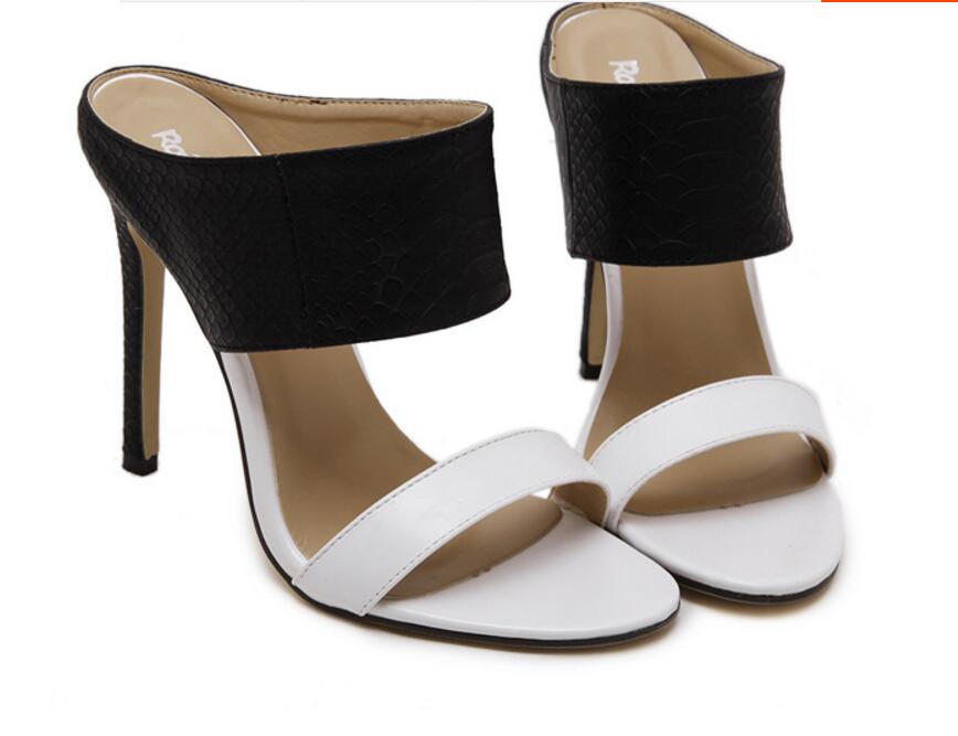 Fashion Women Sandals Summer Ladies Sandals High Heels 11cm Zapatos Mujer Slippers Party office Shoes Ladies Shoes Black+White