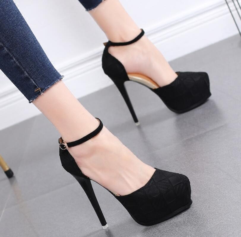 New pointed platform women's shoes super high-heeled flat buckle pumps sexy nightclub stiletto heels