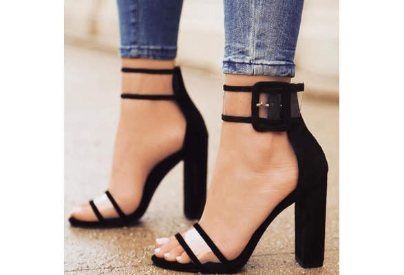 Transparent Sexy Thick High Heels With Buckle Women Python Wild Club Stress Sandals Female