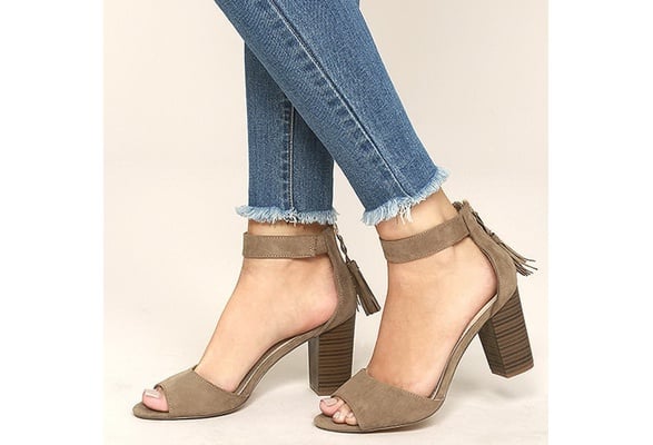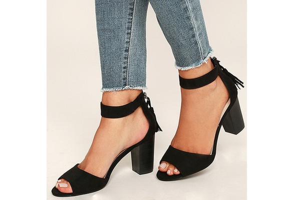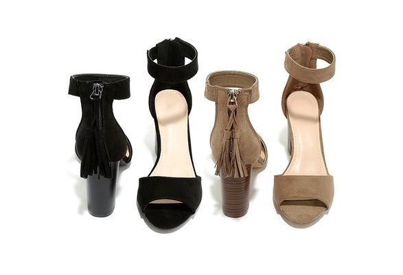 Fashion Women Sandals Sexy Peep Toe Thick High Heels Tassel Sandals