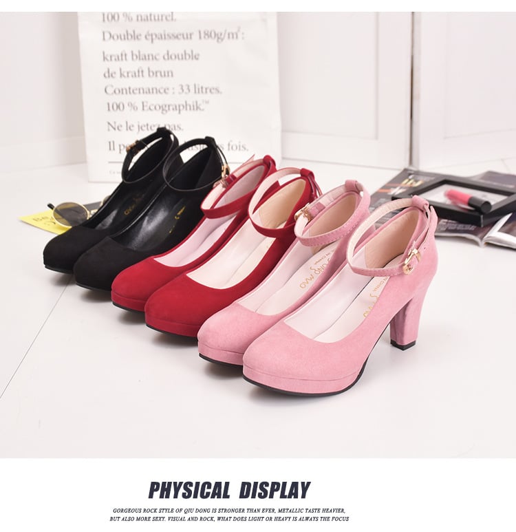 Pink Round Toe Chunky Buckle Fashion High-Heeled Shoeszc-3030