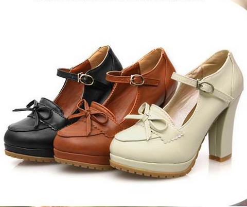 Cute Mid Heel Bow Shoes. Three Colors Available zc-3000