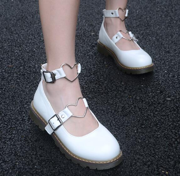 Black/White/Pink Lolita Heart Buckle Shoes zc-2999