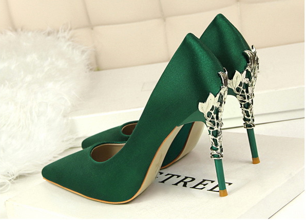 Flower plating metal carved bag heel, metal heel, elegant women's shoes cs-0004