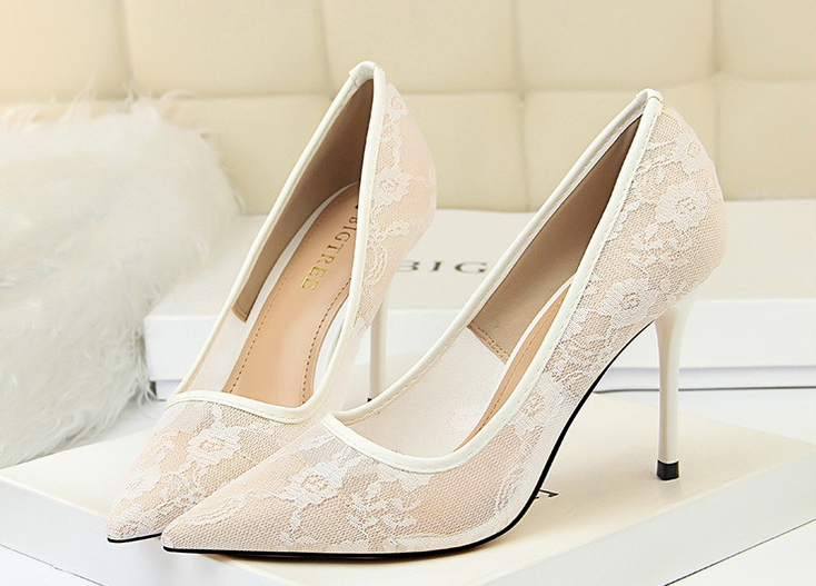 Sexy women's shoes with stiletto heels and shallow pointed pointed lace cs-0005