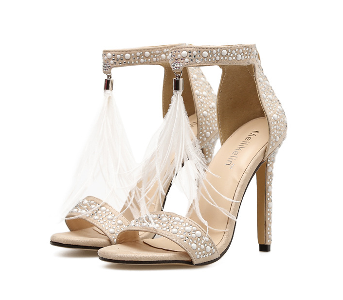 New Rhinestone Feather Stiletto Heel Sandals cs-0009