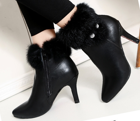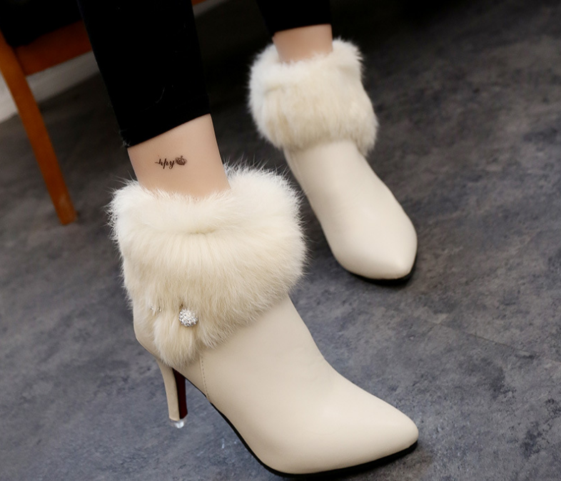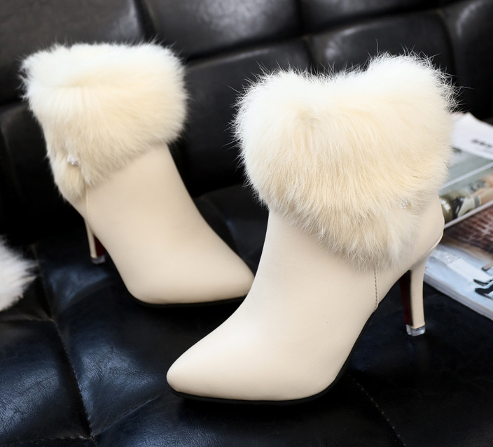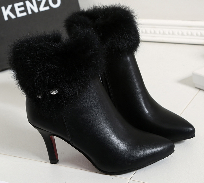 New Booties Martin Boots Pointed Side Zip Rabbit Fur Shoes cs-0022
