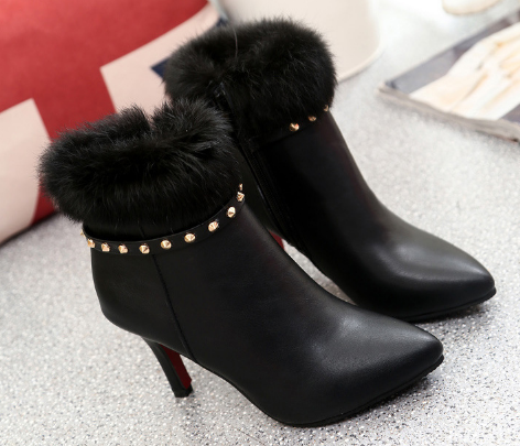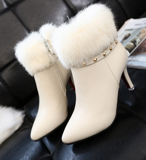 Rabbit fur wild cotton shoes pointed toe boots cs-0023
