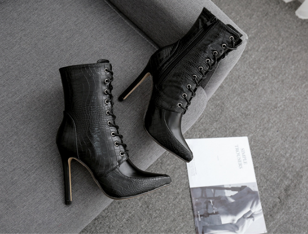 Women's pointed-toe lace-up super-heeled shoes