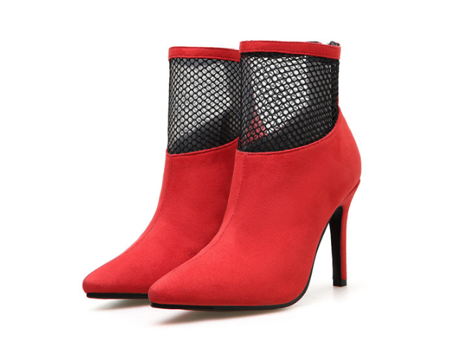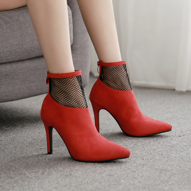 Simple mesh gauze suede sexy pointed toe high-heeled boots