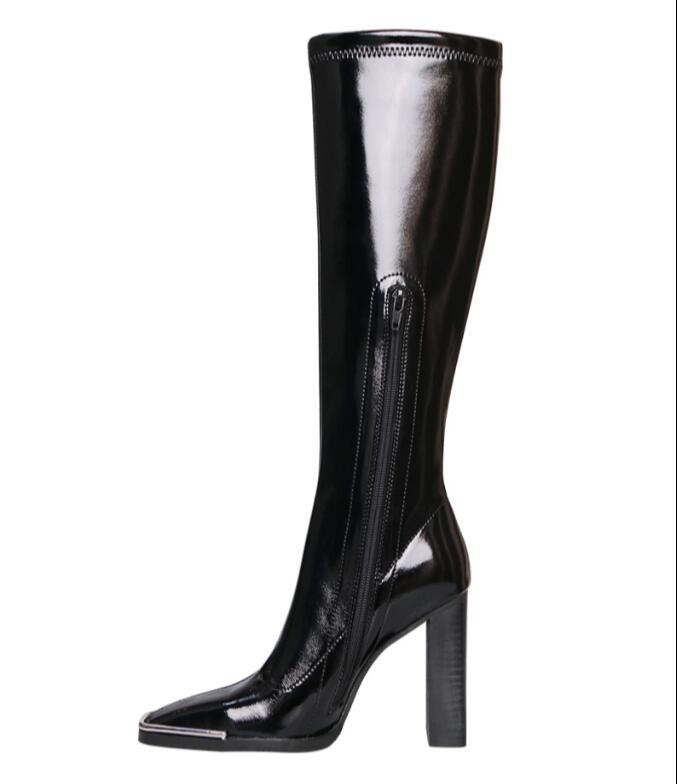 Chunky High Heels Women Autumn/winter High-top Knight Boots Patent Leather Square Toe Long Boots