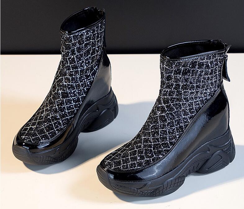 Autumn and winter new net red thin and thin boots thick-soled women's shoes