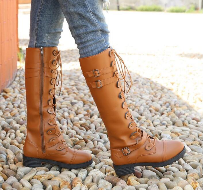 New European and American boots round head rivet belt buckle square heel knight boots