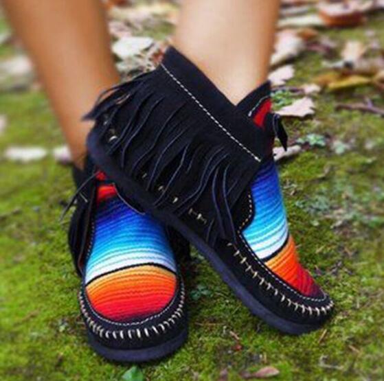 Fringed rainbow suede lace-up high-top shoes fashion casual shoes