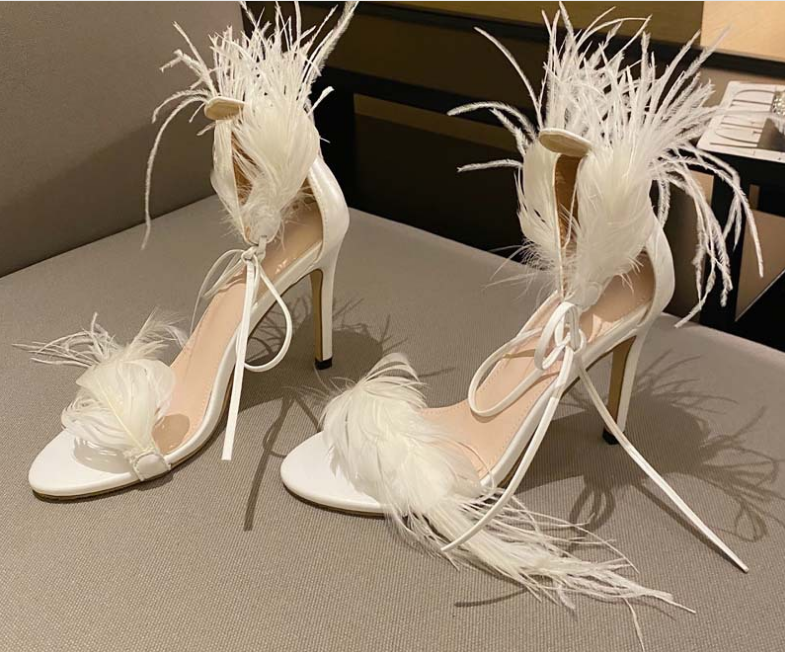 Sexy feather ankle strap stiletto high heel women's shoes