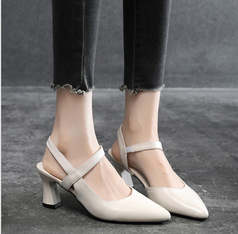 New summer thick with a word with pointed toe Baotou fashion high heels large size women's shoes