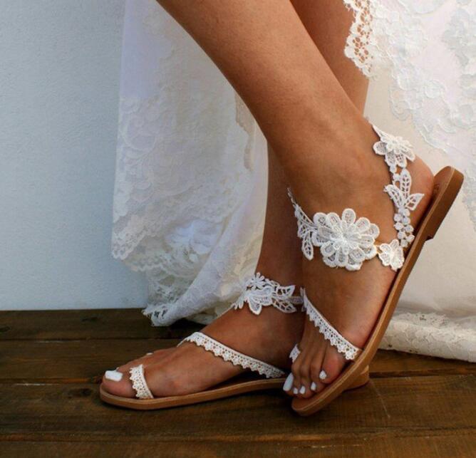 New Floral White Printed Flat Heel Casual Fashion Sandals