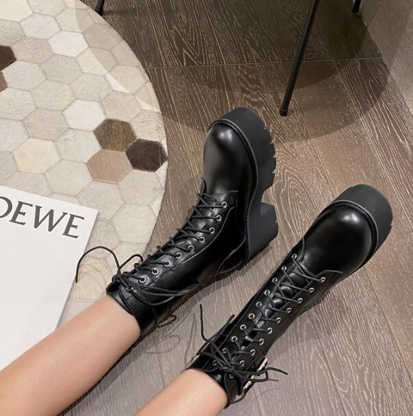 Thick-soled thick-heel Martin women's boots with buckle wedge high-heeled boots