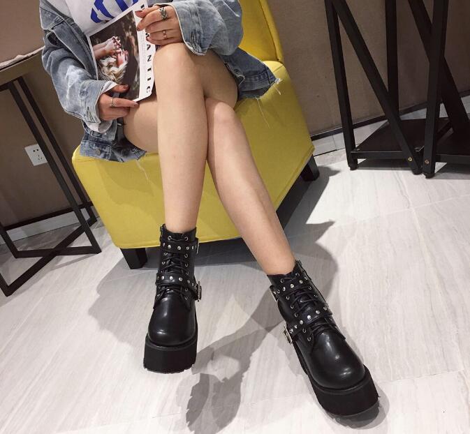 New style thick-soled round toe Martin boots wedge high-heeled ankle boots