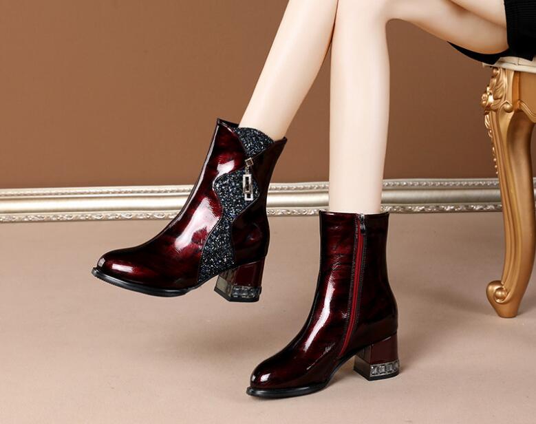New thick-heeled high-heeled round-toe side zipper Martin boots