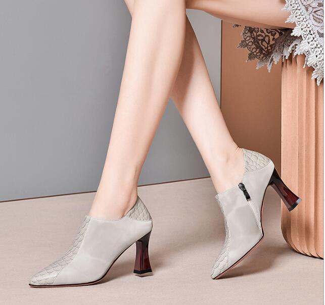 Leather pointed toe thick heel high heels black ladies leather shoes
