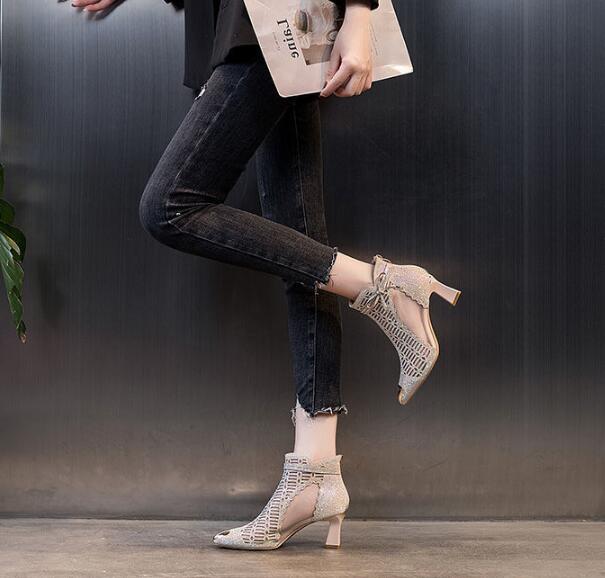 New thick-heeled shoes, thin Martin boots, high-heeled hollow sandals