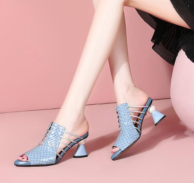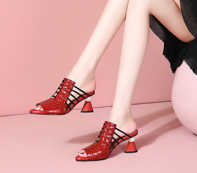 Fish mouth slippers leather shoes small heel sandals