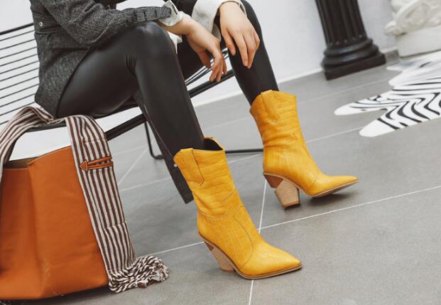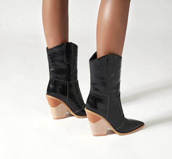 Pointed toe thick high-heeled fish Lin pattern short knight boots