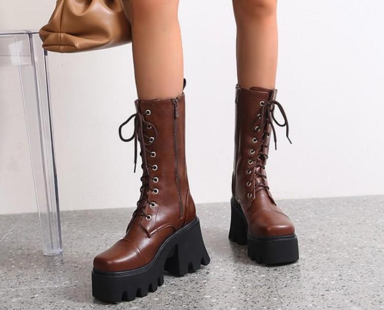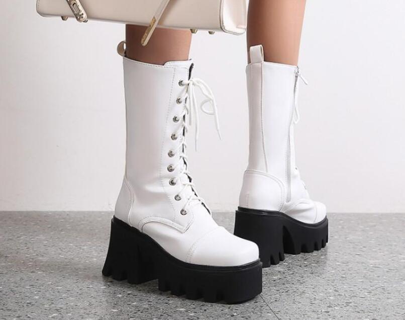 Square Toe Platform Lace-up Muffin Sole Martin Boots
