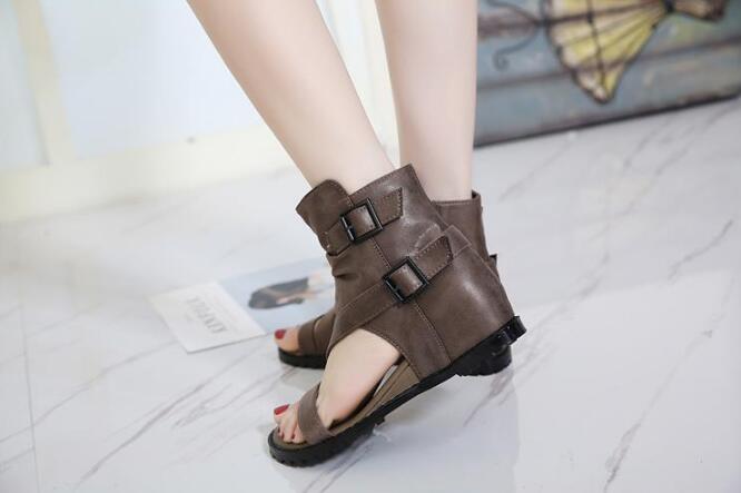 High-top sandals, wedge heels, women's shoes with increased buckles