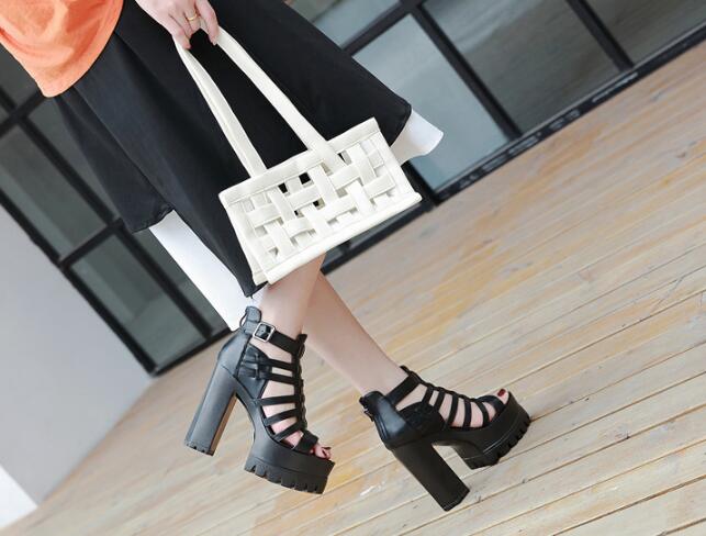 Thick-soled thick-heeled waterproof platform lace-up hollow women's shoes