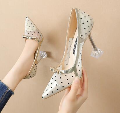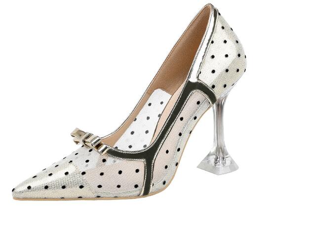 Pointed polka-dot high heels mesh cat bow sexy women's shoes