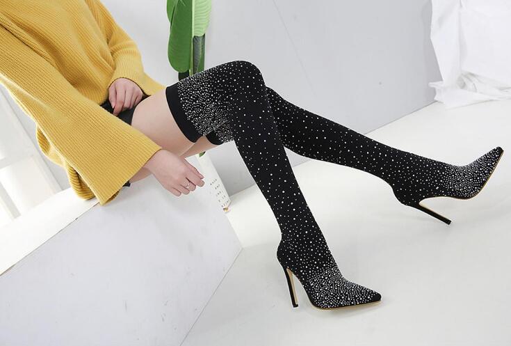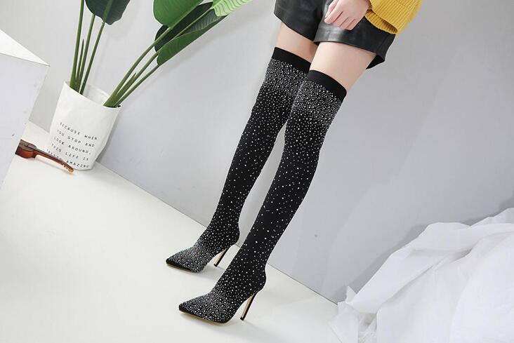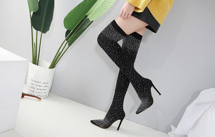 New Rhinestone Stretch Cloth Sexy Stiletto Heel Over the Knee Boots