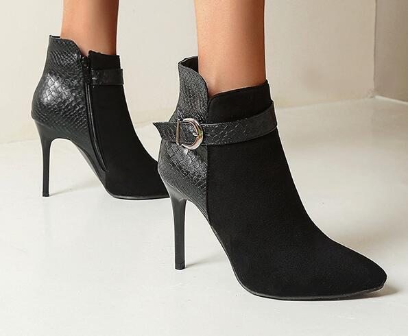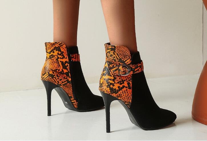 Sexy snake print color matching pointed toe side zipper women's short boots