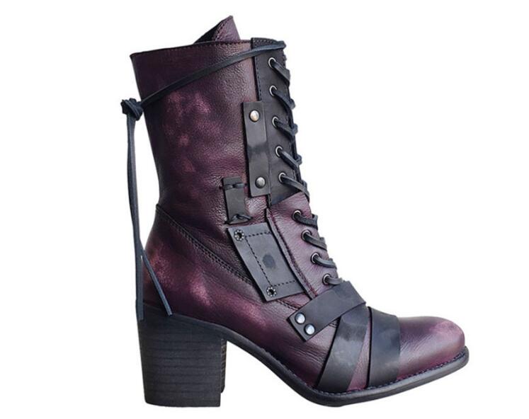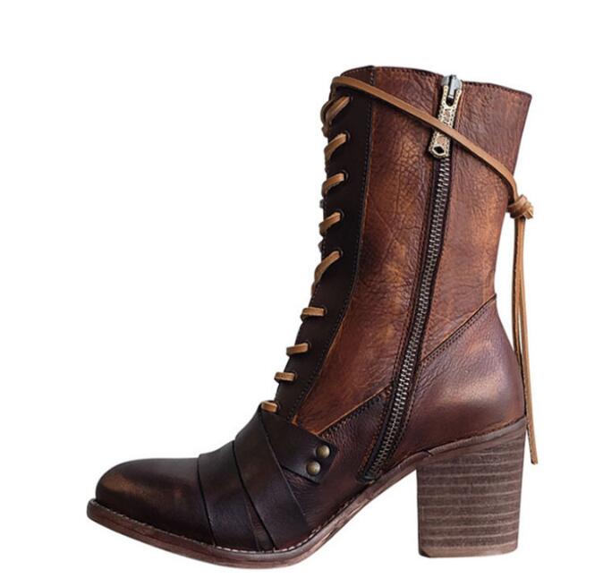 Retro polished thick heel lace high-heeled women's boots