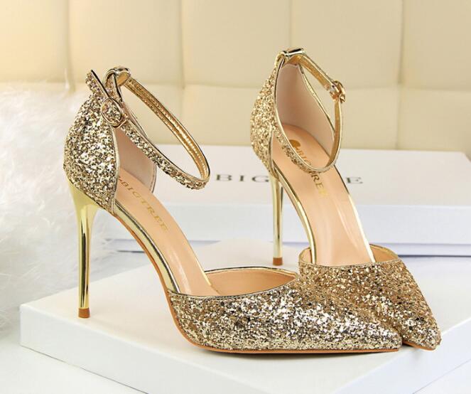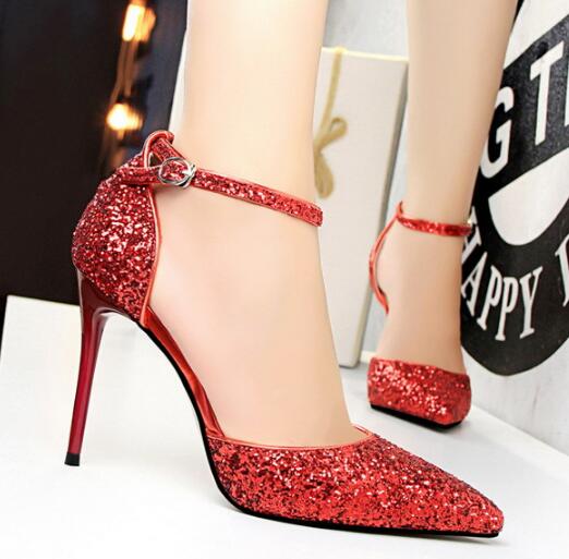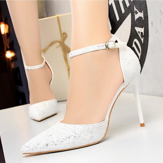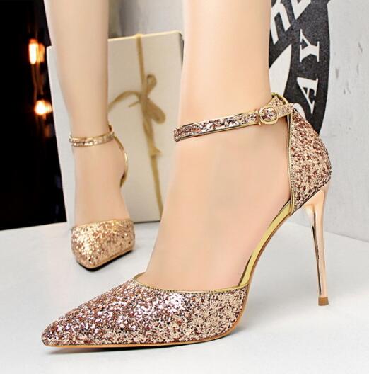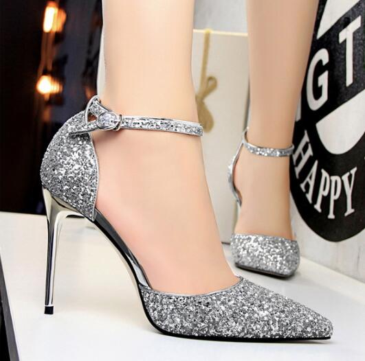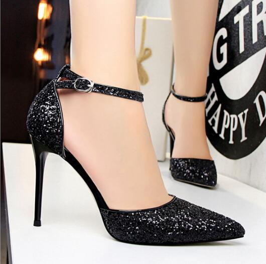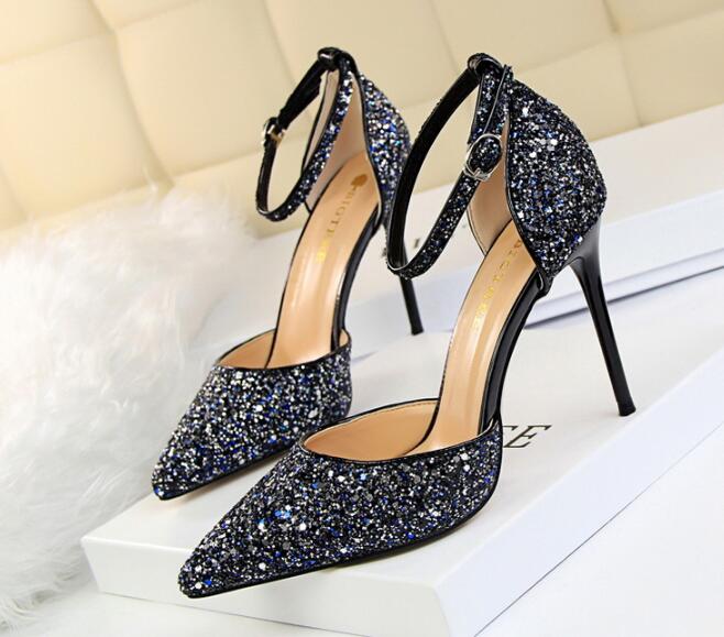 Shallow mouth pointed toe hollow sequins sexy one-line women's shoes