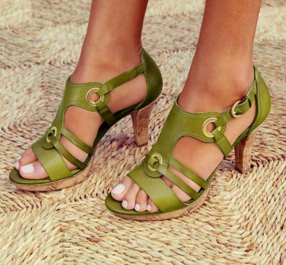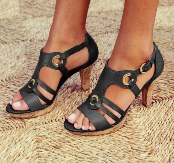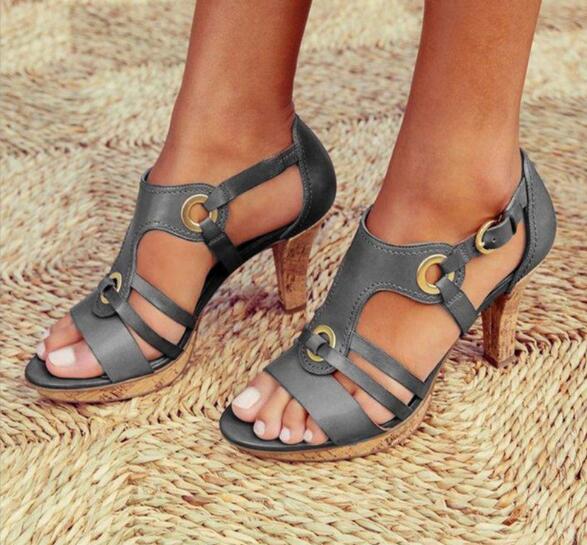 New high-heel buckle hollow sandals