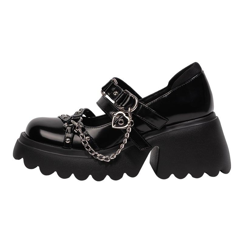 New Mary Jane Thick Sole Shallow Mouth Round Toe Elegant Cool Thick Heel Chain Small Leather Shoes Women
