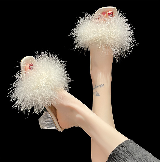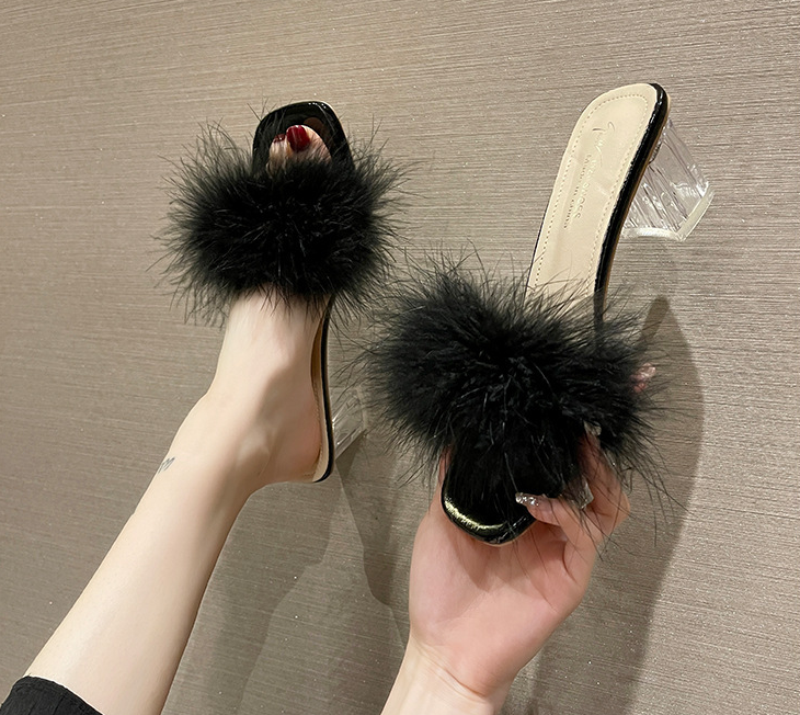 New Fashion Fur Open Toe Square Toe Chunky Heel Women's Shoes