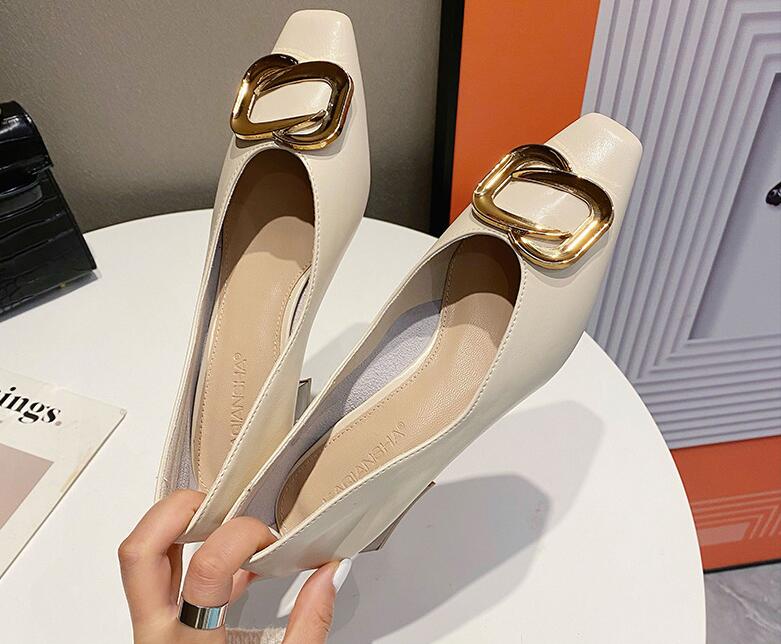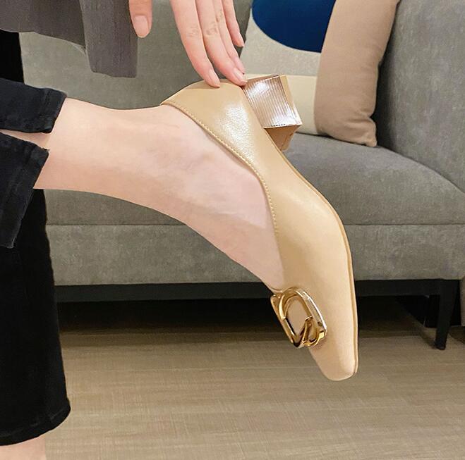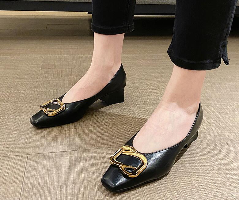 New style thick heel shallow cut low top women's shoes
