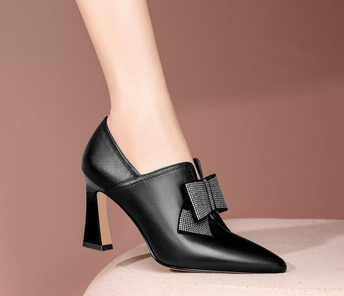 New Rhinestone Bowknot Pointed Toe Deep Mouth Single Boots
