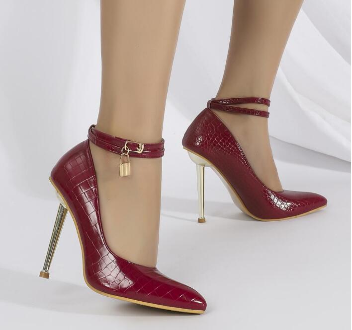 Shallow mouth lock buckle pointed toe stiletto women's shoes