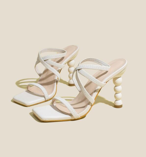 High-heel shaped heel elastic slip-on straps comfortable women's shoes