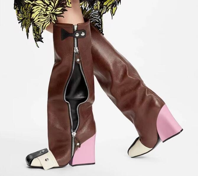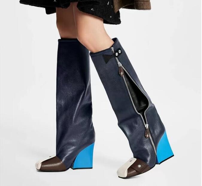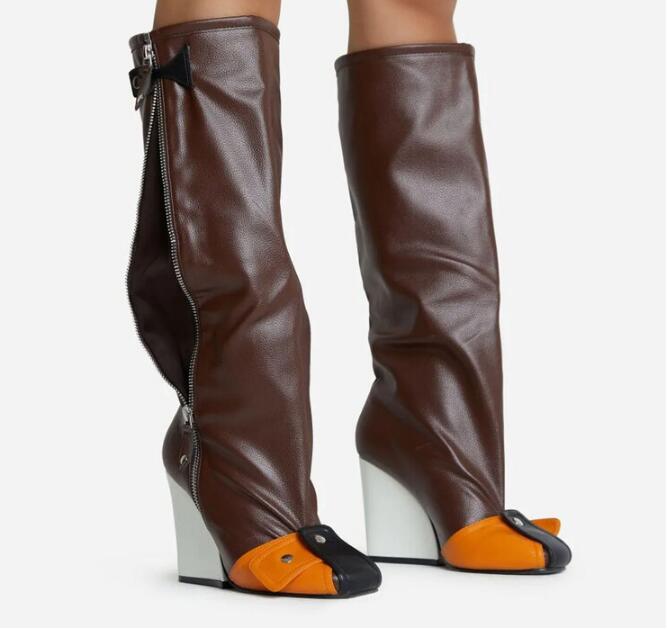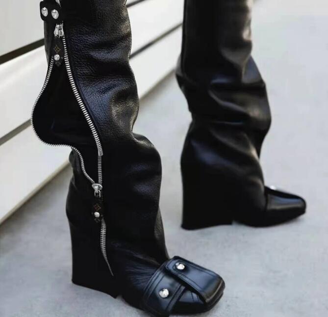 New Wedge Square Toe Slip On Knee High Women's Boots